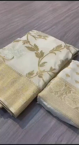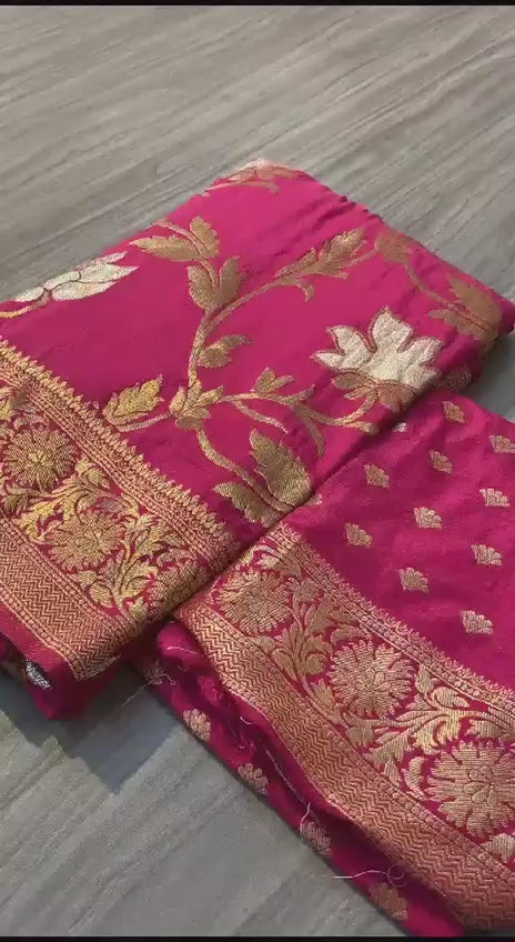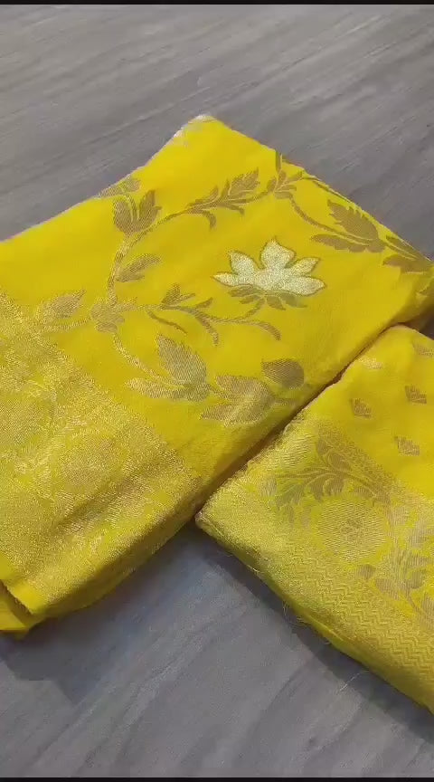 Pure Soft Khadi Georgette Silk Saree With Rich Zari Wooven Pallu Pairs With Fancy Tassels Having Heavy Wooven Border With All Over Zari n Gotapayti Weaving in Full Saree With RunniNg Barcode Blouse (surat)